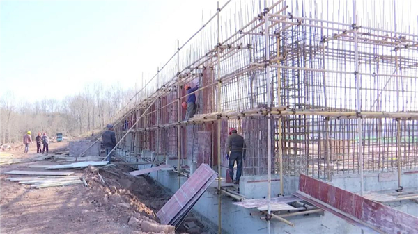 项目技术负责人许海亮:目前主要是原料区挡墙的施工,生产车间挡墙已基本结束,主体设备已架设完成,后期准备钢结构进场,进行钢结构吊装,以及后期配套设备施工,下一步他们会加班加点抢进度,争取在合同工期内把这个项目投入使用。