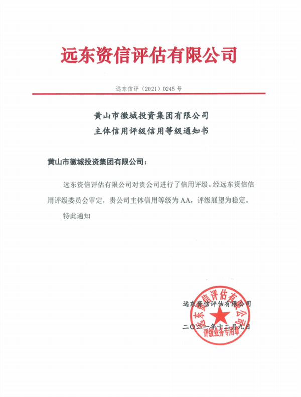 12月9日,乐竞平台公司成功获评2A信用等级,系我市区县唯一获评2A信用等级国有企业,将为歙县加快完善基础设施,加快产业招商和功能培育,打造高气质现代化文化旅游名城建设大平台提供坚实的融资保障。截至目前,集团总资产达135亿元,所有者权益73.9亿元。