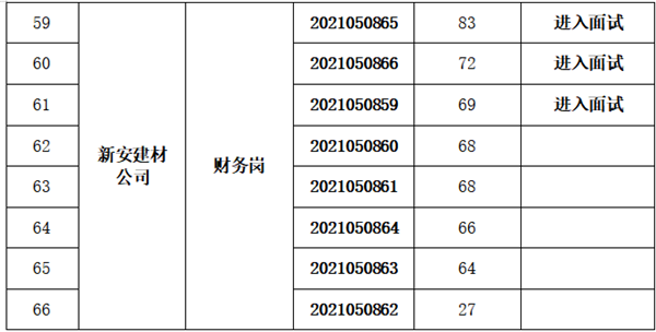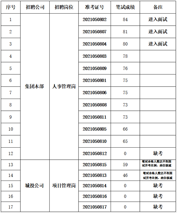 根据《乐竞平台下属子公司招聘员工考试公告》,笔试工作已于2021年5月9日上午结束,现将笔试成绩及进入面试人员名单公布如下: