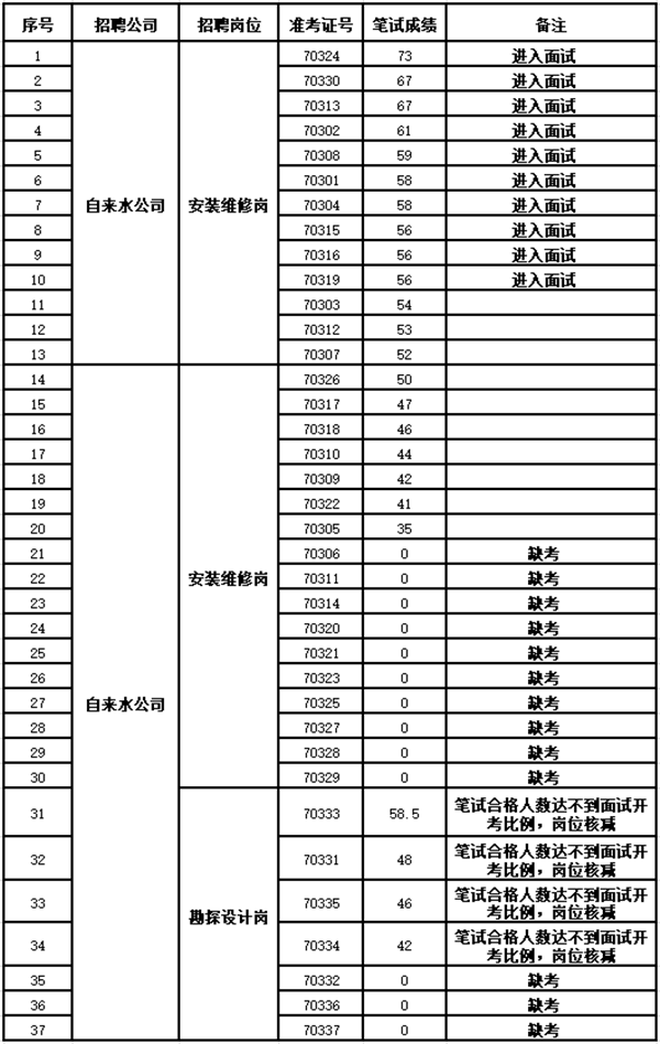 根据《乐竞平台下属子公司招聘员工考试公告》,笔试工作已于2020年3月29日上午结束,现将笔试成绩及进入面试人员名单公布如下: