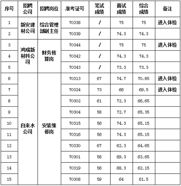 乐竞平台下属子公司招聘员工面试工作已于2020年3月29日结束,现将面试成绩及最终综合成绩公布如下:
