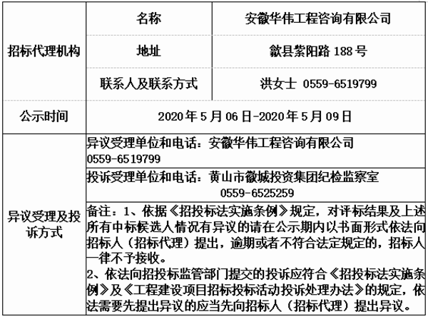 安徽华伟工程咨询有限公司受歙县自来水有限公司的委托,对(HJSGC2020HWS016、歙县雄村镇朱村供水安装附属土建工程)进行(小型项目招标),本项目于(2020年5月06日)在(歙县自来水有限公司三楼会议室)开标、评标,现根据有关法律、法规要求,对中标候选人进行公示。