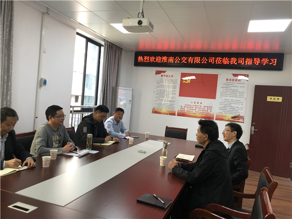 4月19日,淮南市公共交通有限责任公司总经理黄国军一行莅临公交公司考察学习,县道路运输管理服务中心副主任胡咸卫,公司执行董事张华以及相关科室负责人参加座谈。