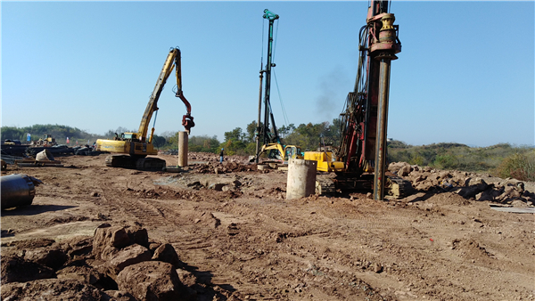 歙县徽投鸿瑞砂石生产基地项目位于歙县桂林镇江村片川,总占地面积约58亩,总建筑面积约2.3万平方米,其中标准化厂房18190平方米;主要建设时产300吨,年产60万吨砂石加工生产线。目前,厂房、设备及营运项目于2020年10月24日开标,由黄山新洲建设集团有限公司中标,中标价为4401万元,工期为120天。该项目于2020年10月28日进场施工,目前,已完成42米挡墙基础垫层浇筑,正在架立基础钢筋,完成原料堆放区10根旋挖桩浇筑。施工单位正在抓住晴好天气,对挡墙基础和设备基础进行开挖,力争在11月底完成设备基础浇筑任务。