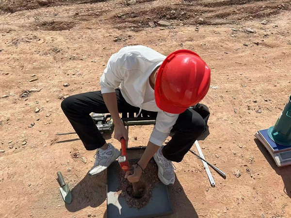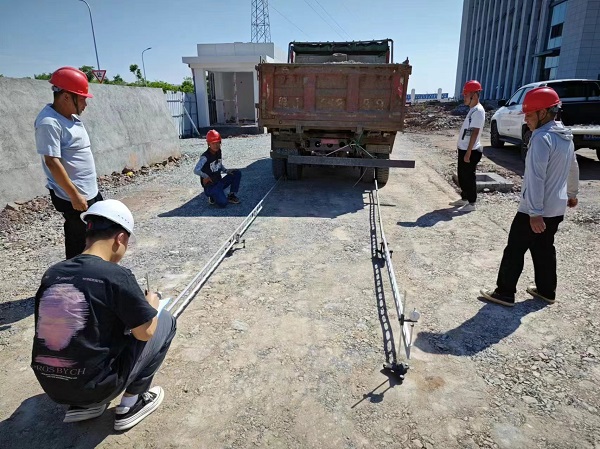 在炎炎烈日下,质检公司工作人员手持精密仪器,穿梭在户外各个施工现场,开展了一系列至关重要的检测工作,对各项检测内容进行了详细测量、登记。