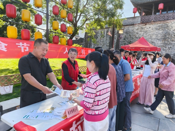 10月16日,歙县发改委、乐竞平台等单位,在徽州府衙广场开展世界粮食日和全国粮食安全宣传周“手拉手共倡多样美食,聚合力同创美好未来”“粮食节约,人人有责”主题宣传活动,各志愿者在街头向老百姓宣讲安徽省实施《中华人民共和国粮食安全保障法》办法等政策法规、粮食产后节约减损、营养健康等方面知识,发放爱粮节粮倡议书。宣讲活动得到路过市民、游客、来徽州古城研学小学生的积极参与和热情响应。